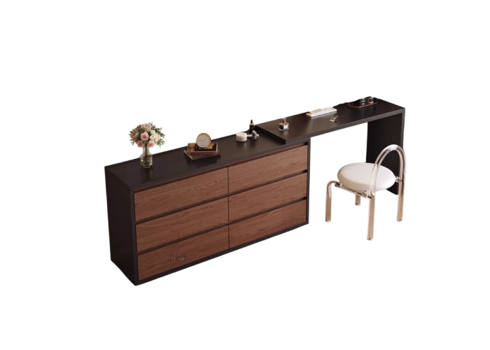 Stylish dressing table set with matching chair perfect for bedrooms and beauty corners