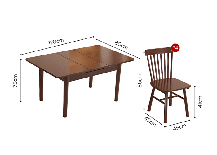 Dimensions: 120 cm (L) + 30 cm (L) x 80 cm (W) x 75 cm (H)